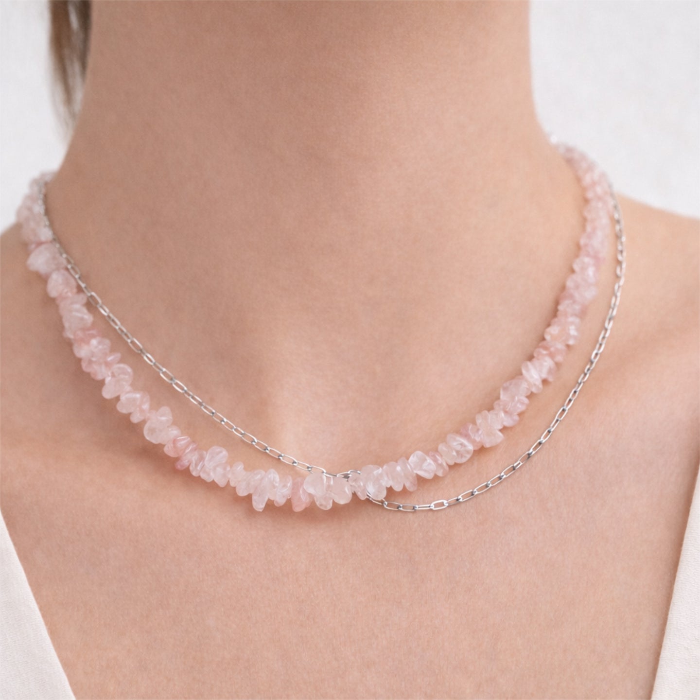 Doppelte Halskette mit Rosenquarz und versilberter Kette – Ein Ausdruck von Liebe und Eleganz